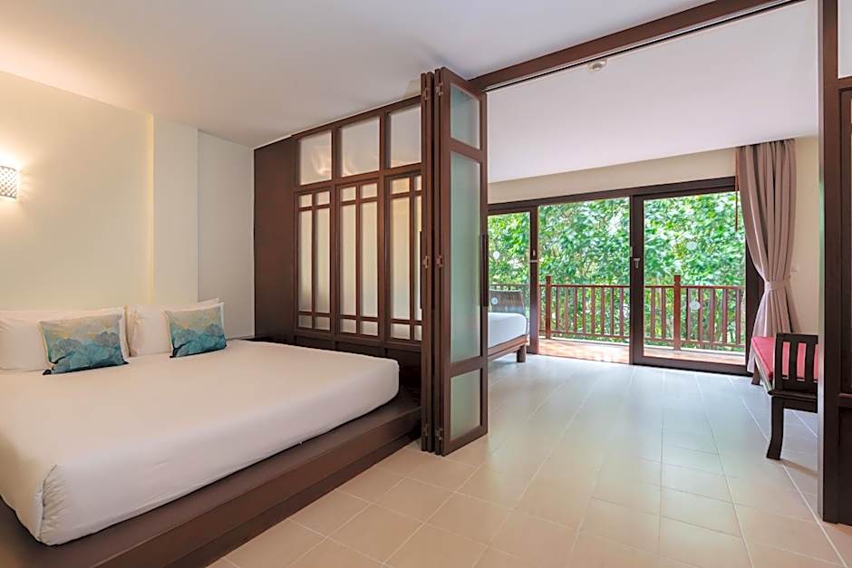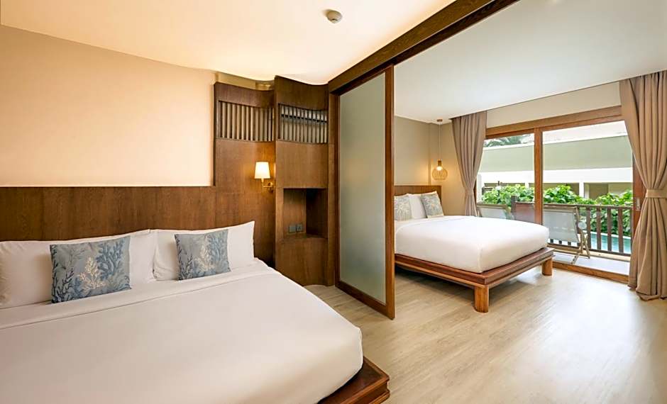 This room features a private balcony, 2 large beds, air conditioning and sofa.
